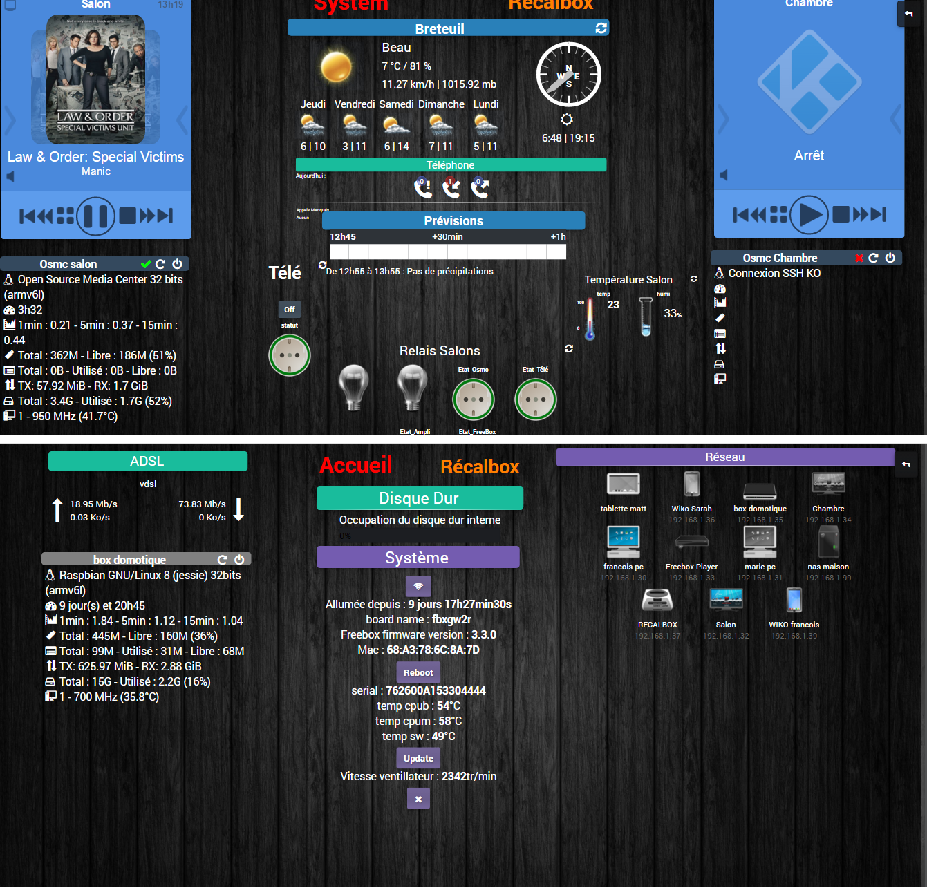 voila se que donne un peu ma page avec deux kodi sonde dht11 carte relais météo ect.....