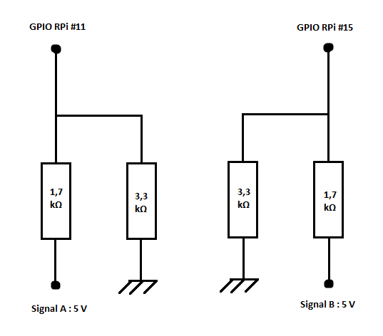L'idée étant bien sûr de conserver mon 3,3 V en entrée des GPIO #11 et #15.