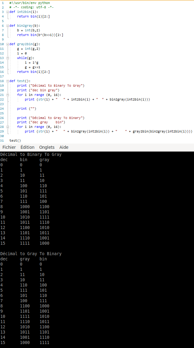Après quelques tâtonnements , j'ai réussi à trouver la logique et à pondre le code d'encodage et le plus important , le décodage de ce fameux code binaire GRAY.